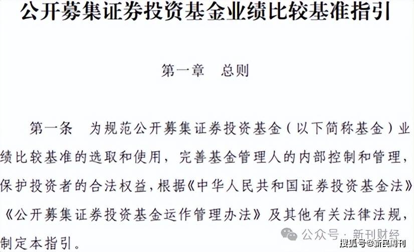 今年1月23日,证监会发布了《公开募集证券投资基金业绩比较基准指引》(以下简称《指引》),基金业协会也同步出台了《公开募集证券投资基金业绩比较基准操作细则》(以下简称《细则》),均自今年3月1日起执行。
